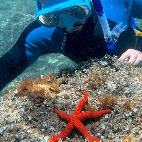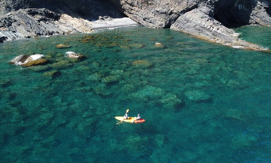 Embárcate en una aventura de kayak y snorkel. Reme a través de paisajes pintorescos, bucee en un área marina protegida, salte desde los acantilados y disfrute de un sándwich local.