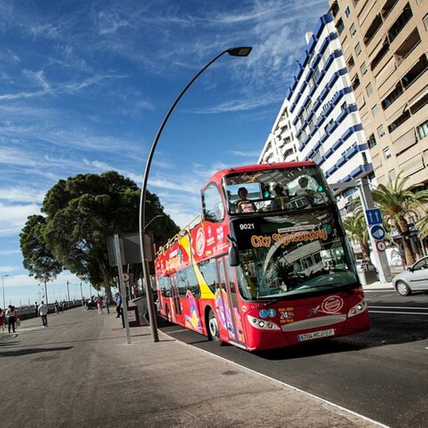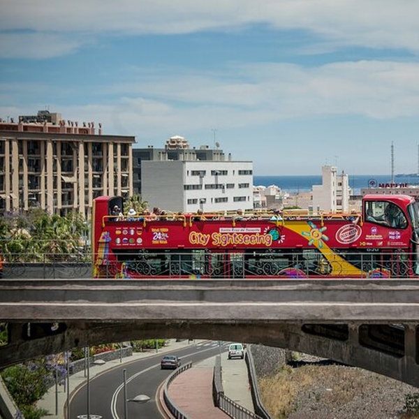 Explore la hermosa ciudad de Santa Cruz de Tenerife en un recorrido en autobús turístico de 24 horas. Nuestro icónico autobús rojo de dos pisos le permite explorar Tenerife a su propio ritmo, creando su propio itinerario para subir y bajar tanto como desee en los lugares y atracciones que más le interesen. Algunas de las principales atracciones que puede esperar ver en el camino incluyen; Plaza de España, Palmetum, Auditorio, Mercado Nuestra Señora de África, Casa del Carnaval, Parque García Sanabria, Museo Histórico Militar y mucho más! A medida que explore, disfrutará de vistas panorámicas de 360 grados desde la cubierta abierta, perfectas para sentir el sol durante todo el año en su cara. Con audioguías disponibles en varios idiomas, estarás inundado de historias y hechos interesantes sobre Tenerife. ¡Reserva hoy mismo tu entrada City Sightseeing para experimentar todo esto y mucho más!