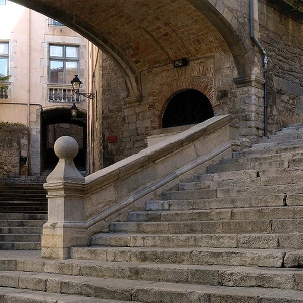 Una escalera sorprendente con una fachada rústica en la parte superior. La Pujada de Sant Domenec es algo digno de contemplar. Un monasterio agustino, luego una prisión y finalmente una iglesia. Este lugar tiene que ver tanto con la historia como con el mito.