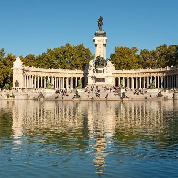 Descubre la hermosa y única construcción romántica al noreste del parque y escucha las fascinantes historias sobre el rey Fernando VII. Aprende datos interesantes y anécdotas sobre el jardín y su historia mientras paseas por esta encantadora plaza. Estanque Grande (15 min): Estando allí durante los últimos 4 siglos, indicando uno de los lugares más paisajísticos del parque, el Estanque Grande de El Retiro solía ser una posesión privada de la corona que ha pasado a manos del gobierno actual. . Podrás practicar la vela o maravillarte con el enorme tamaño del estanque mientras escuchas nuestras historias. Palacio de Velázquez (18 minutos): originalmente construido para la Exposición Nacional de Minería de 1883 y ocupando la posición central del parque, el Palacio de Velázquez se usa hoy como museo de los territorios de ultramar de España. Deje que Clio Muse lo guíe a través de las divertidas historias del edificio y su arquitecto.