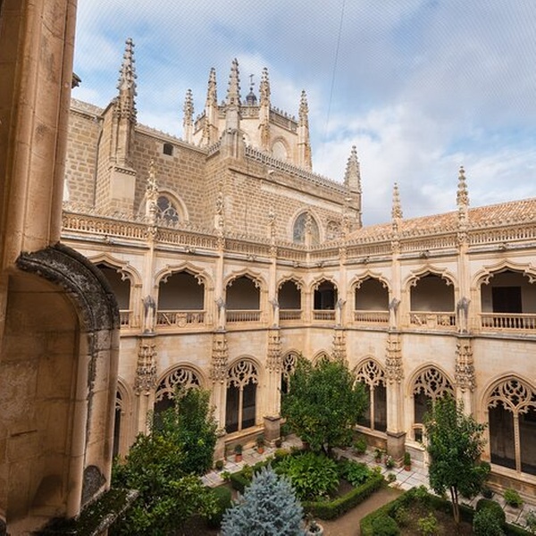 Adéntrate en uno de los monumentos más emblemáticos de Toledo, el Monasterio de San Juan de los Reyes. Por encargo de la reina Isabel I de Castilla en el siglo XV, esta maravilla gótica fue pensada como un mausoleo real y un símbolo del triunfo cristiano de España. La arquitectura del monasterio refleja la grandeza y ambición de los Reyes Católicos, con bóvedas de nervaduras elevadas, fachadas elaboradas y claustros serenos de dos niveles. Admira las paredes encadenadas, que alguna vez usaron los cristianos cautivos liberados, mientras exploras los patios y capillas interiores. El claustro superior ofrece vistas a los tejados de Toledo, mientras que la detallada cantería revela historias de conquista y devoción. Tanto si eres un amante de la historia, la arquitectura o la contemplación tranquila. El proveedor le enviará rápidamente un correo electrónico con su ticket de entrada tan pronto como se confirme su reserva. No es posible saltarse las líneas de seguridad. Podría haber una fila en la entrada y es obligatorio para todos los visitantes.