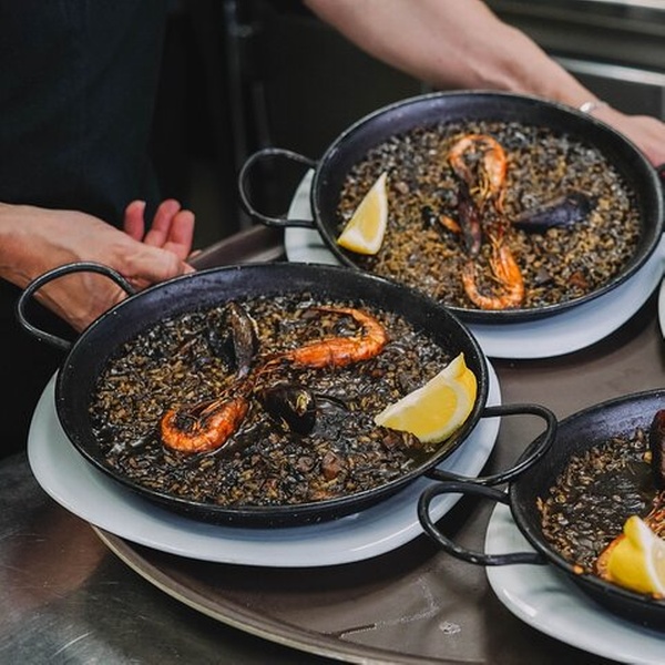 - Menú completo de 3 platos con tapas regionales, paella de arroz negro y chocolates artesanales