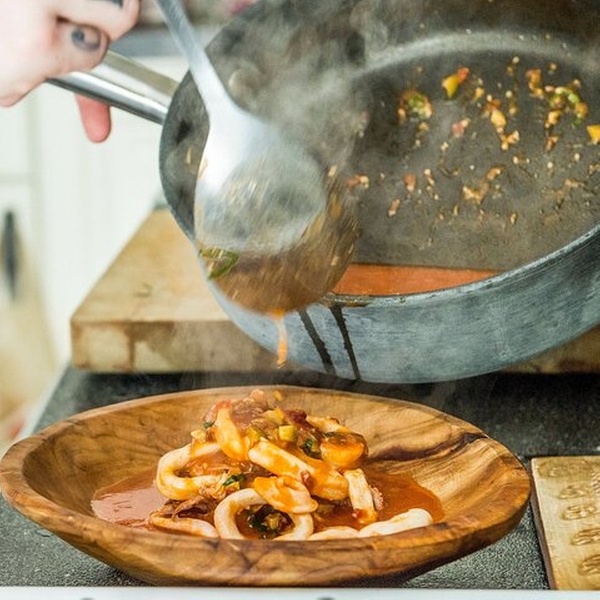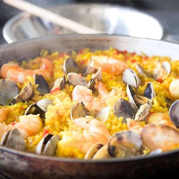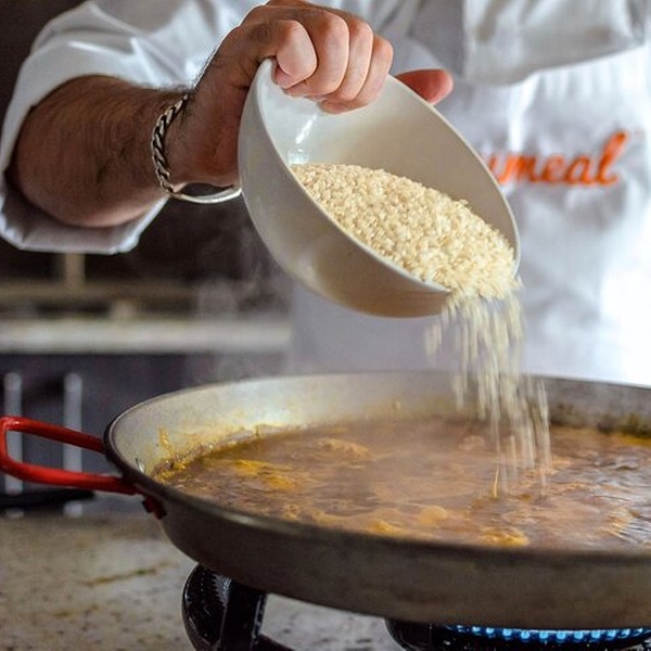 Aprende a hacer paellas emblemáticas, tapas maridadas con vinos y un postre español en esta auténtica clase de cocina de 4 platos organizada a través de Cozymeal en el corazón de Madrid. Convierta su visita en una rica aventura culinaria mientras prepara una comida completa de cuatro platos en un animado entorno de cocina. Durante la clase, crearás : - Primer plato : gazpacho fresco y vibrante — un entrante refrescante español - Segundo plato : tres tipos de paella —marisco, carne y vegetariana, cada una cocinada a la perfección con arroz Bomba, aceite de oliva español y azafrán - Tercer plato : bocata de calamares — calamares crujientes metidos en pan fresco, uno de los favoritos madrileños -Postre : crema Catalana mousse — crema cremosa acabada con azúcar brûléed Durante toda la comida se sirven vinos regionales para elevar cada plato y completar esta experiencia gourmet.