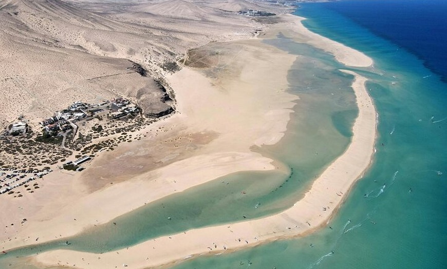 Playas ondulantes, llanuras desérticas y picos de montaña imponentes: Jandia es una porción de Fuerteventura en su estado más crudo. Y en este recorrido a pie podrás ver la península en todo su esplendor. El Parque Natural de Jandia, el Risco del Paso y el Morro Jable están en la agenda, así como el tiempo libre para nadar. Comenzarás en el Parque Natural Jandia. Esta enorme reserva cubre la mayor parte del extremo sur de la isla, abarcando montañas, costas rocosas, dunas de arena y zonas silvestres no desarrolladas, es un refugio para los amantes de la naturaleza. Luego, continúa hacia Sotavento, donde las aguas cristalinas se superponen contra el suave y dorado tramo de arena. Disfrutarás de tiempo libre para darte un chapuzón, caminar por la playa o simplemente admirar la vista. El siguiente es Morro Jable. A pesar de que este pequeño pueblo pesquero ha tenido cierto desarrollo turístico a lo largo de los años, ha logrado conservar su encanto tradicional canario. Pasa algún tiempo aquí tomando fotos dignas de un instante o simplemente relájate con un café en una de las cafeterías locales