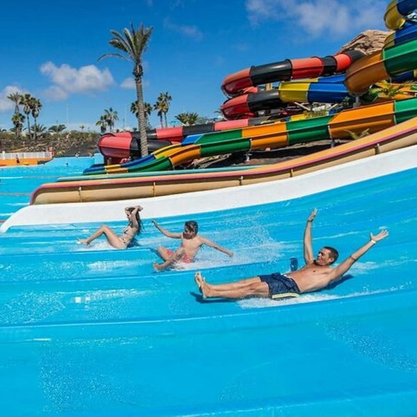 Acua Water Park Corralejo ofrece un fantástico día de diversión familiar, siendo el único parque acuático de Fuerteventura. Con una gran variedad de toboganes y piscinas diseñados tanto para niños como para adultos, es el destino perfecto para que todos disfruten juntos de emocionantes aventuras acuáticas y momentos de relax.