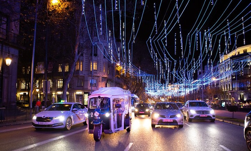 Madrid se viste de gala en Navidad y en Eco Tuk Tuk queremos enseñártelo con este recorrido de 60 minutos para que lo disfrutes de una manera cómoda y divertida. La ciudad es conocida por sus iluminaciones en esta época del año y en este recorrido podrás disfrutar de su singular decoración conocida en todo el mundo. Y no dudes en pedirnos que te hagamos fotos. ¡Convierte tu estancia en Madrid en una experiencia inolvidable y llévate un gran recuerdo de esta maravillosa ciudad!