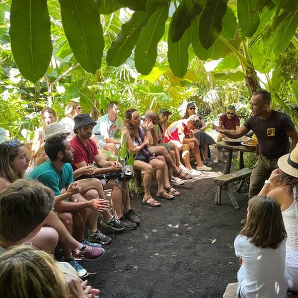 Todos los jueves a las 10 : 30 a.m., lo invitamos a una visita guiada a su finca en Puerto Naos. Te encontraremos en la entrada de la playa de tu finca, PlatanoLògico, y te guiaremos dentro. Aprenderás sobre el diseño inteligente natural de los ecosistemas vistos en tu finca, el fascinante matriarcado de los plataneros, la importancia de una buena producción para una buena nutrición y cómo coexistimos con los volcanes. La experiencia dura entre 90 y 120 minutos. No hay mucho caminar, y hay sombra y lugares para sentarse mientras compartimos nuestro conocimiento. Al final, disfrutamos de una taza de té solar juntos.