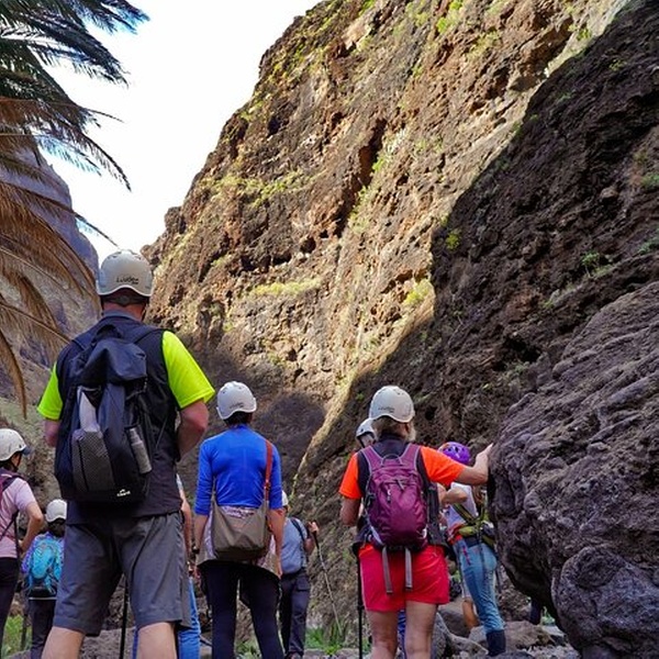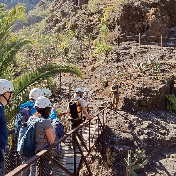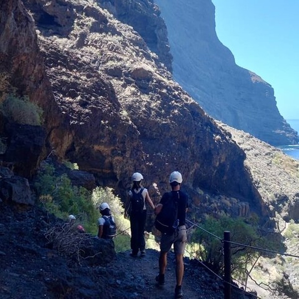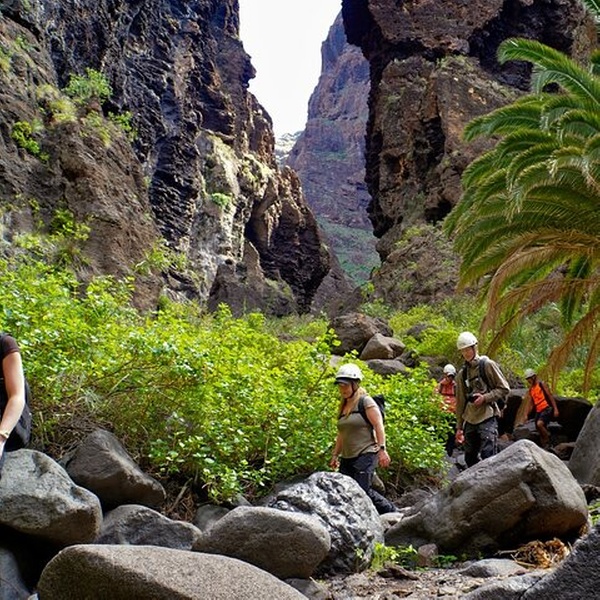 Nos encontramos en la parada de autobús junto a la Plaza de Santiago del Teide, donde el guía te da la bienvenida y te explica la ruta. Un paseo panorámico a través de las montañas conduce al pintoresco pueblo de Masca, donde tendrá tiempo para explorar antes de comenzar la caminata. El sendero de 5 km desciende a través de una dramática garganta volcánica, rodeada de imponentes acantilados y exuberante vegetación. Al final se encuentra una cala escondida bajo los majestuosos acantilados de Los Gigantes. Aunque nadar no está permitido, la vista es impresionante. La aventura termina con un paseo en barco que ofrece vistas únicas, seguido de un traslado de regreso al punto de encuentro.