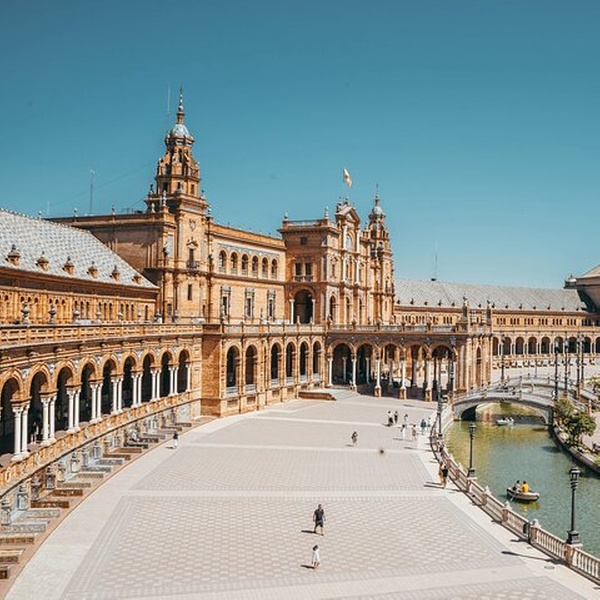 Maravíllate con la grandeza de Plaza de España, una joya arquitectónica icónica de Sevilla. Construida para la Exposición Iberoamericana de 1929, esta plaza semicircular está rodeada por un magnífico edificio adornado con vibrantes azulejos cerámicos que representan a cada provincia española. Da un paseo en barco por el encantador canal, pasea por la vasta plaza o relájate bajo sus columnatas. La belleza y la escala de Plaza de España la convierten en una visita obligada, ofreciendo una mezcla perfecta de historia, arte y vistas panorámicas.