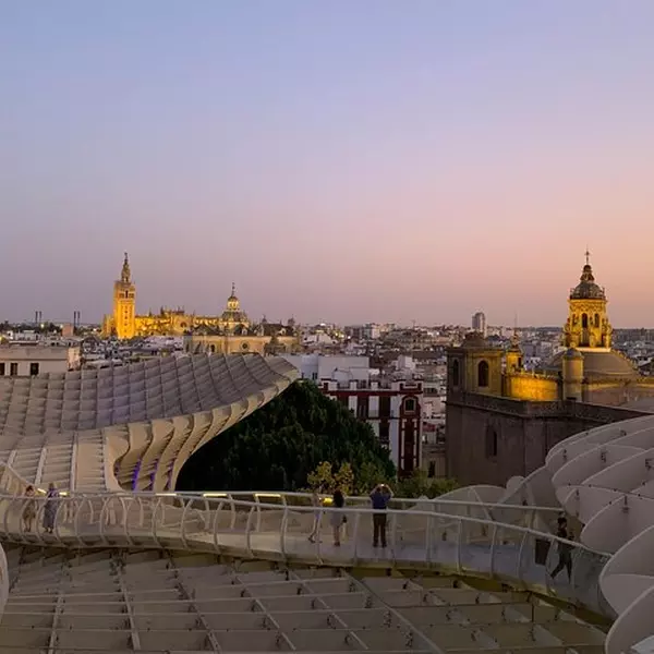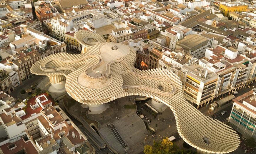 Vive la maravilla arquitectónica moderna de Setas de Sevilla, una llamativa estructura de madera que domina el horizonte de la ciudad. Conocida por su diseño único, similar a una seta, ofrece impresionantes vistas panorámicas desde su pasarela en la azotea, lo que la convierte en el lugar perfecto para capturar la belleza de Sevilla. Debajo de ella, explore el museo arqueológico o disfrute de un ambiente animado en la plaza. Setas de Sevilla es una visita obligada para los visitantes que buscan un contraste moderno con el encanto histórico de la ciudad.
