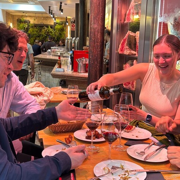 Únete a nuestro tour para experimentar Madrid a través de una mezcla exclusiva de gastronomía, historia y conocimiento local. Descubre el verdadero espíritu de Madrid en Chamberí, un barrio céntrico que sigue siendo auténtico y animado, pero libre de las multitudes turísticas habituales. Hoy en día, también es uno de los centros culinarios más emocionantes de la ciudad, donde la tradición y los ingredientes de calidad están en el corazón de todo. Este tour gastronómico es una comida completa repartida en varias paradas: – 5 Paradas: Aperitivo con un toque moderno, terraza bistró con mariscos, un mercado local con cata de Jamón Ibérico y quesos, un restaurante tradicional y una panadería histórica. – Degusta tapas de primera calidad, jamón ibérico, quesos artesanos y pastelería. – Aprende sobre la cultura y la cocina de Madrid con un guía amable y experto – Solo grupos pequeños (máx. 8 pax) – íntimos y relajados. Nuestro objetivo es simple: brindarle una experiencia inolvidable, degustando lo que los lugareños realmente comen: sin trampas para turistas, solo comida excepcional y un ambiente relajado.