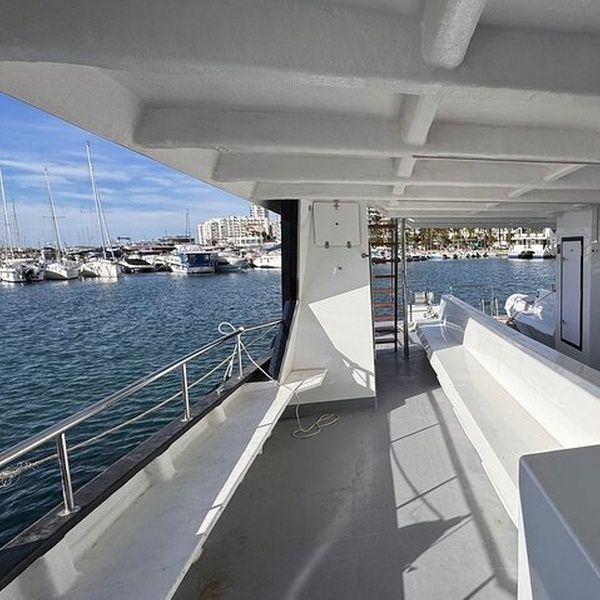 Vive un crucero VIP de 4 horas por la puesta del sol con tablas de paddle, bebidas y snorkel en Ibiza en un lujoso barco de dos pisos, limitado a 30 pasajeros para un viaje exclusivo. Saliendo del puerto de San Antonio, navegue por la costa oeste hacia impresionantes playas como Cala Bassa y Cala Comte, regresando después de una impresionante puesta de sol. Anclaje en una cala cristalina durante una hora para bucear en aguas vibrantes, remar en tablas de colores o relajarse en la amplia terraza. Saboree un showcooking de Paella , recién preparado a bordo, con ensalada de pasta, ensalada de papa, y jugosa fruta fresca, maridado con cerveza ilimitada, sangría, refrescos, y agua para mantenerlo fresco. Pase por la Cueva del Amor, Conejera, Espartar y Es Vedrá, terminando con una parada mágica al atardecer en Café del Mar y Café Mambo. El barco cuenta con un sistema de sonido, baños modernos y una cómoda cubierta para su disfrute. ¡Reserva ahora para una aventura inolvidable!