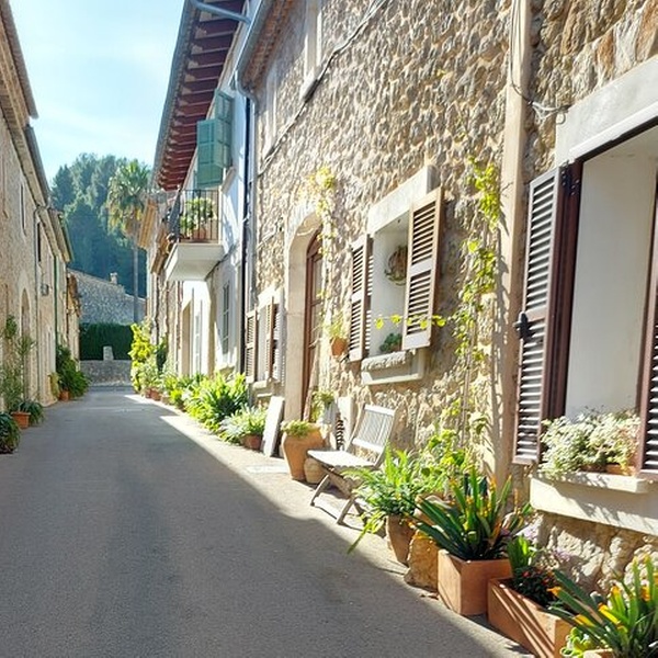 Un tranquilo pueblo de montaña con encantadoras casas de piedra y vistas panorámicas de las estribaciones de Tramuntana.