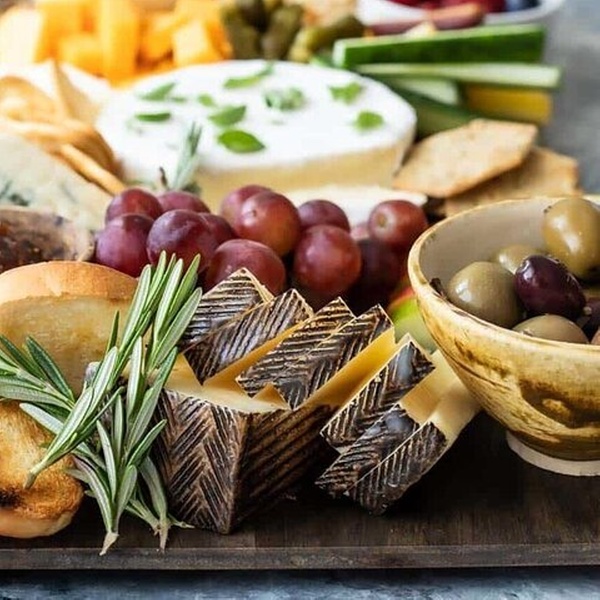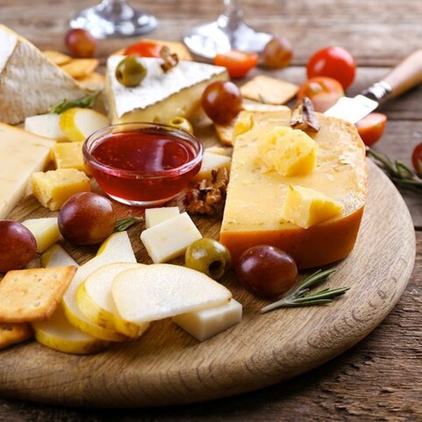 Vermut catalán clásico con bocados de verduras como aceitunas, alcachofas marinadas y tablas de queso.