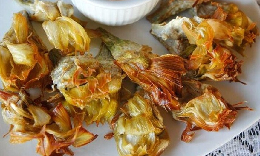 Tapas vegetarianas creativas como verduras a la parrilla, tortilla de trufa o pepitas de queso. Terminando con Crema Catalana de postre.