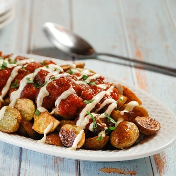 Fideuà vegetariana (paella catalana de fideos), esqueixada de bacalao sin pescado sustituida por tomate y pimientos, o bombas vegetarianas. ¡Por qué morir!