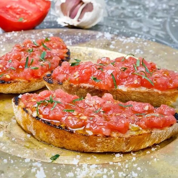Prueba la mejor escalivada (pimientos asados y berenjena), tortilla de patatas y pan con tomate.