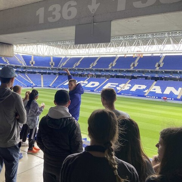 SEGUNDA MITAD : Llegada al vibrante hub futbolístico de Cornellà, donde echaremos un vistazo primero al íntimo estadio CE Cornellà, antes de dirigirnos al magnífico Estadio RCDE, sede del RCD Espanyol. Disfruta de una visita guiada exclusiva dirigida por un guía oficial del club Espanyol, con : Impresionante experiencia audiovisual de 360° que muestra la rica historia del club Acceso a la sala de prensa de última generación donde se realizan las entrevistas posteriores al partido Visita los vestuarios del Espanyol donde las estrellas se preparan para los partidos Entrada exclusiva a los stands VIP con las mejores vistas de la casa Camina sobre el terreno de juego real y siéntate en el banco de suplentes Tome fotos memorables en el legendario césped Nuestra segunda mitad concluye en la tienda oficial del club, donde se pueden ver recuerdos exclusivos. Salta a un cómodo paseo privado (incluido) hasta la parada final.