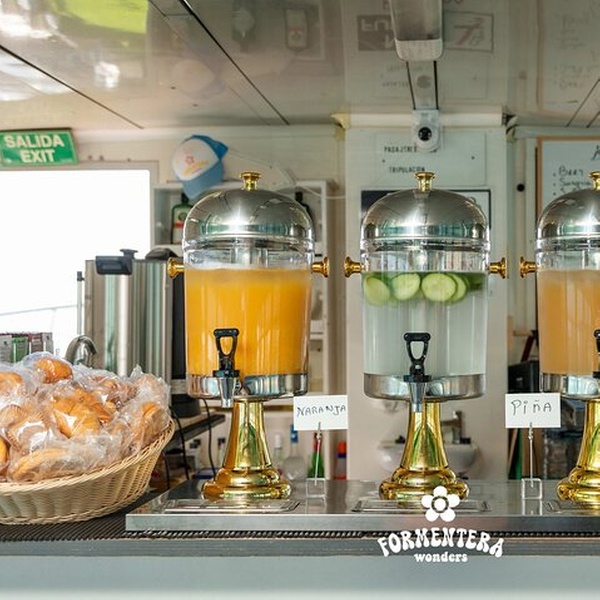 Empieza tu día a bordo con un delicioso desayuno buffet mientras navegamos rumbo a las aguas turquesas de S’ Espalmador y Ses Illetes. Disfrutarás de productos locales, fruta fresca, pan recién hecho, mermeladas, bollería, café, tés, zumos naturales y todo con el encanto del Mediterráneo como escenario. Ibiza–Formentera 360° Boat Trip es una experiencia todo incluido diseñada para que vivas lo mejor de ambas islas en un solo día: relax, gastronomía, diversión y el auténtico estilo de vida mediterráneo. Escoge tres modalidades: • Essential – un día perfecto en el mar. • Explorer – Para los que desean explorar más, descubrir rincones únicos de Formentera • Full Experience – Incluye todo lo de Explorer + Sunset Party by Beautiful People Ibiza: música, ritmo y una puesta de sol inolvidable para cerrar el día con la energía de Ibiza. Elige tu formato ideal y déjate llevar por una travesía que lo tiene todo.
