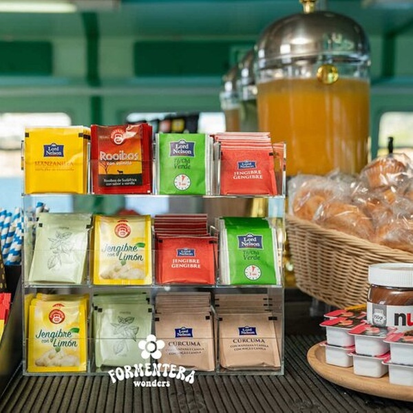 A las 9:15 AM, sube a bordo de nuestro catamarán. Nada mas embarcar podrás disfrutar del desayuno y de la barra libre mientras el barco zarpa hacia las cristalinas aguas de Formentera. El desayuno inlcuye: fruta variada, bollería, leche chocolatada, zumos naturales, embutidos locales y mermeladas. La barra libre de bebidas podrás disfrutarla en todo momento e incluye: refrescos, zumos, agua, cerveza, sangría, mojitos y cocktail Blue Formentera.