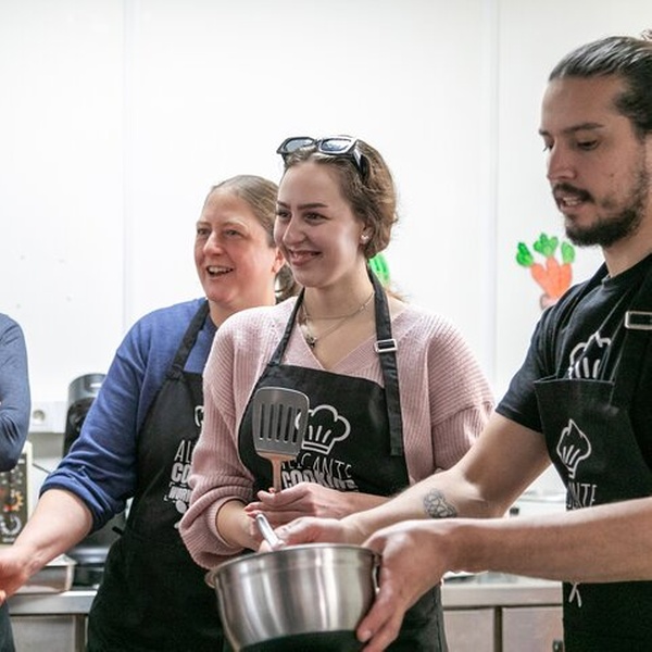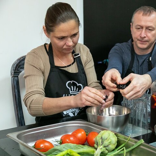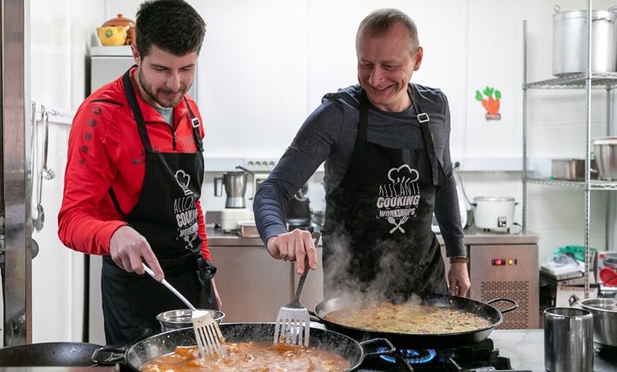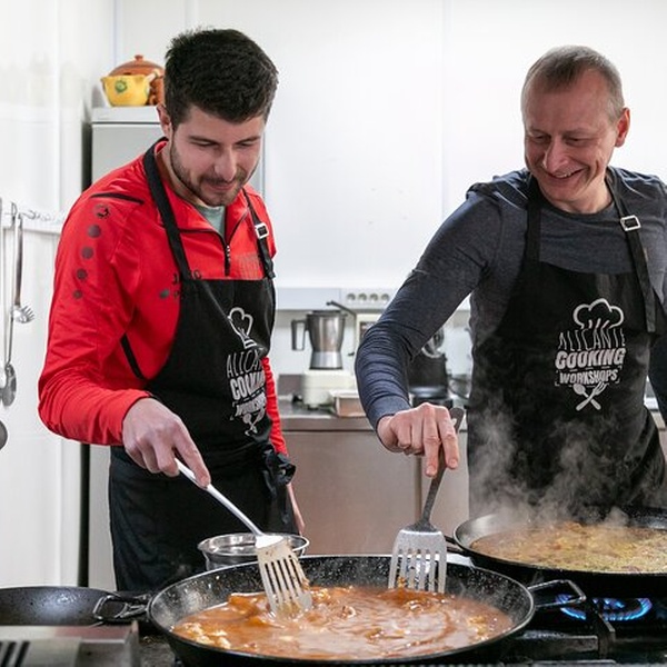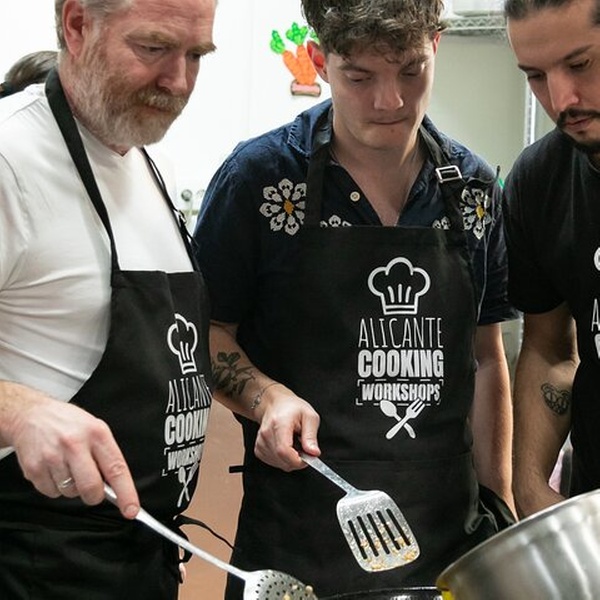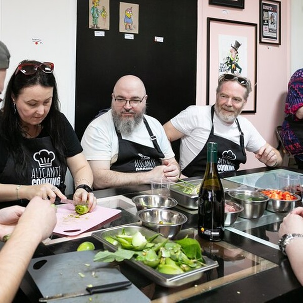 Este es el primer taller de cocina creado en Alicante, fundado en 2022 por profesionales de la hostelería local. A diferencia de otras clases, hacemos del Mercado Central una parte clave de la experiencia. Explorarás sus coloridos puestos, conocerás a vendedores locales y aprenderás sobre los sabores y tradiciones que conforman la cocina Española. Luego, entra en nuestra verdadera cocina de trabajo dentro de un restaurante local, no un establecimiento turístico, sino un lugar donde los lugareños comen realmente. Guiado por nuestro chef y anfitrión profesional, prepararás tu paella desde cero, incluyendo el caldo y la salmorreta, la base tradicional de sofrito. Elija su sabor — marisco, carne o vegetariano — y disfrute de su paella, sangría y aperitivos caseros en un ambiente relajado compartido con viajeros y locales por igual. Esta es la experiencia gourmet más auténtica de Alicante, creada por locales que realmente aman su ciudad, sus mercados y su comida. Profesionales reales, productos reales, auténtico sabor local.