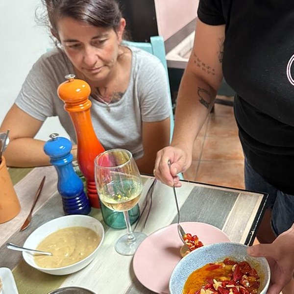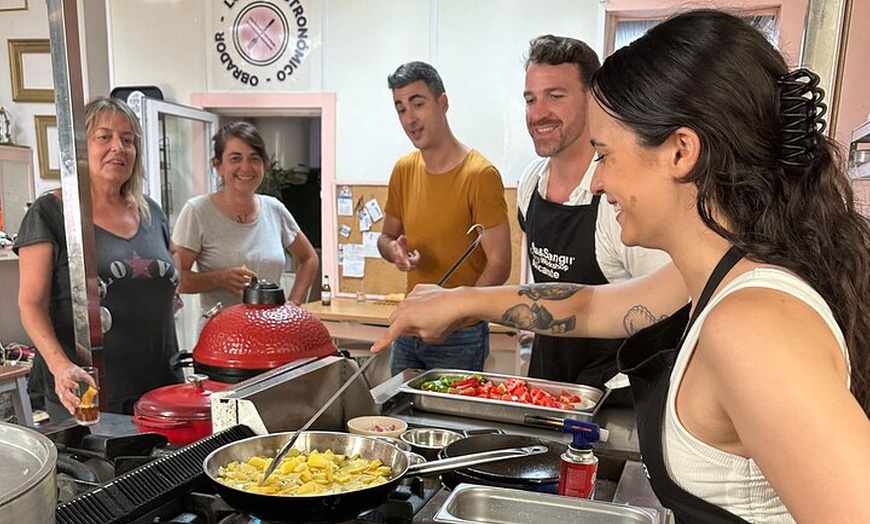 Esta es una experiencia de cocina cálida y práctica que te lleva directamente al corazón de la cultura gastronómica alicantina. Cocinarás un menú de tapas completo en una cocina real y animada, no un escenario, sino un espacio de trabajo donde los lugareños comen todos los días. Dirigido por un chef local y un anfitrión amable, utilizará ingredientes frescos de primera calidad del Mercado Central para preparar auténticas tapas Españolas mientras aprende las técnicas, historias y tradiciones detrás de cada plato. No se trata solo de recetas, se trata de conectar a través de la comida. Cocinarás, aprenderás y compartirás la experiencia con otros en un entorno relajado y local. El menú es abundante y lleno de sabor, pero lo que te acompaña es el ambiente – real, honesto y único Alicante. Para terminar la velada, disfrute de la música de guitarra Española en vivo que agrega el toque perfecto de alma mediterránea a su comida, un momento que hace que esta experiencia sea realmente inolvidable.