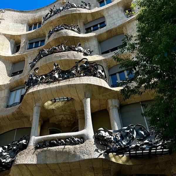 Termine el recorrido a pie en la Casa Milà de Gaudí, también conocida como La Pedrera. Con su fachada de piedra en forma de ola y su tejado surrealista, es una de sus obras más icónicas. La velada concluye con una última degustación de tapas y cava, en el mismo edificio. Un final perfecto para tu viaje a través de la mezcla de arte, arquitectura y gastronomía de Barcelona.