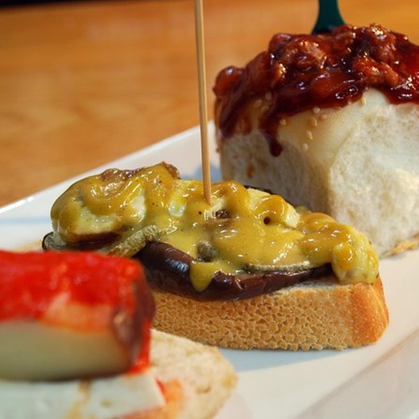 Estos le ofrecerán comida local para probar y para consumir, normalmente en forma de canapés, de pie y parcialmente fuera del local