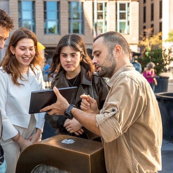 - Conoce a tu guía turístico frente a la escultura BARCINO, Plaza Nova, 40, Ciutat Vella, 08002 Barcelona, España. Frente al acueducto romano.