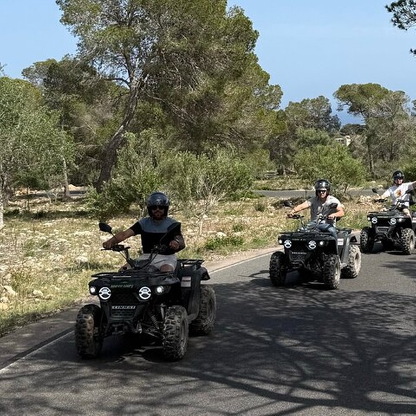 ¡VIVE LA AVENTURA EN QUAD POR MALLORCA! Increíble aventura en quad con duración de 2h y 30 min. por los senderos del oeste de Mallorca. Conduce un quad LINHAI M 210 automático por una ruta desafiante donde el guía te llevará por lugares muy diversos: mar, montaña, pueblos y campo Mallorquín. Descubre fauna y flora de esta maravillosa isla, típicas del sur. Disfrute de una parada para nadar en las aguas cristalinas de Mallorca al final de la excursión. Todos nuestros quad son completamente nuevos, de la marca ATV LINHAI M 210. !Atrévete a esta experiencia!