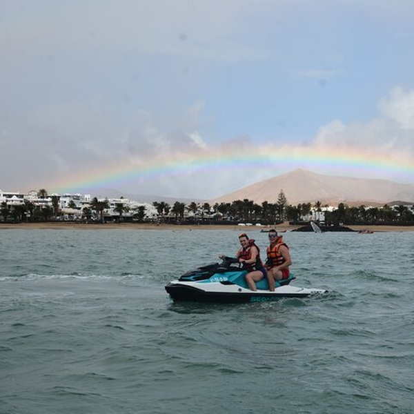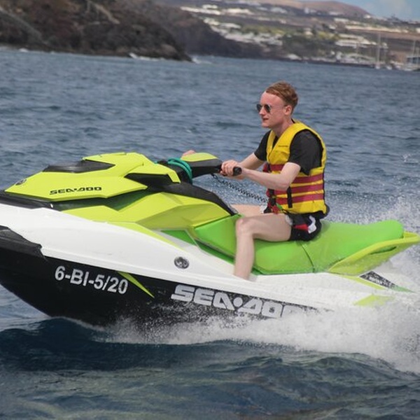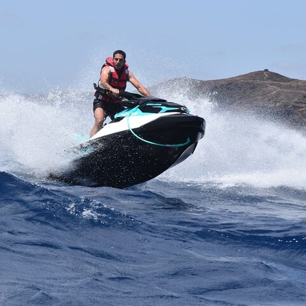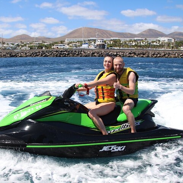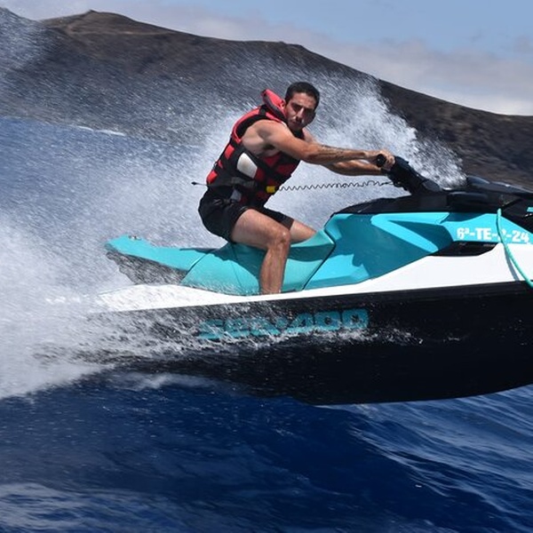 Disfruta de una actividad en moto de agua con impresionantes vistas de la costa volcánica de Lanzarote. Maravíllate con las playas escénicas, formaciones rocosas y más mientras cabalgas sobre las olas. Haz que tu corazón lata con fuerza con un emocionante paseo en moto de agua por la costa de Lanzarote. Verás fascinantes formaciones rocosas y disfruta de vistas panorámicas de la costa. Prepárate con tu traje de neopreno y un chaleco salvavidas. Dirígete al barco y zarpa desde el puerto. Receta una charla de seguridad y pautas sobre cómo usar tu moto de agua de forma segura antes de que empiece la diversión. Sigue a tu guía experto hacia aguas abiertas. Disfruta de las fantásticas vistas de la costa de Lanzarote. Admira las hermosas playas y las escarpadas formaciones rocosas volcánicas mientras cabalgas sobre las olas. Ruta 20min - posibilidad de cambio de conductor en la mitad. Salidas desde Costa Teguise o Puerto del Carmen.