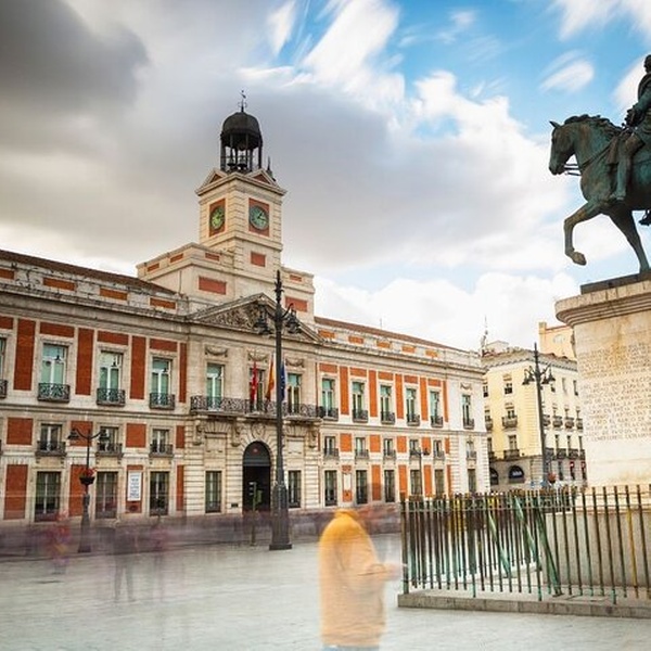 Nuestra última parada es la Puerta del Sol, una de las plazas más famosas de Madrid.