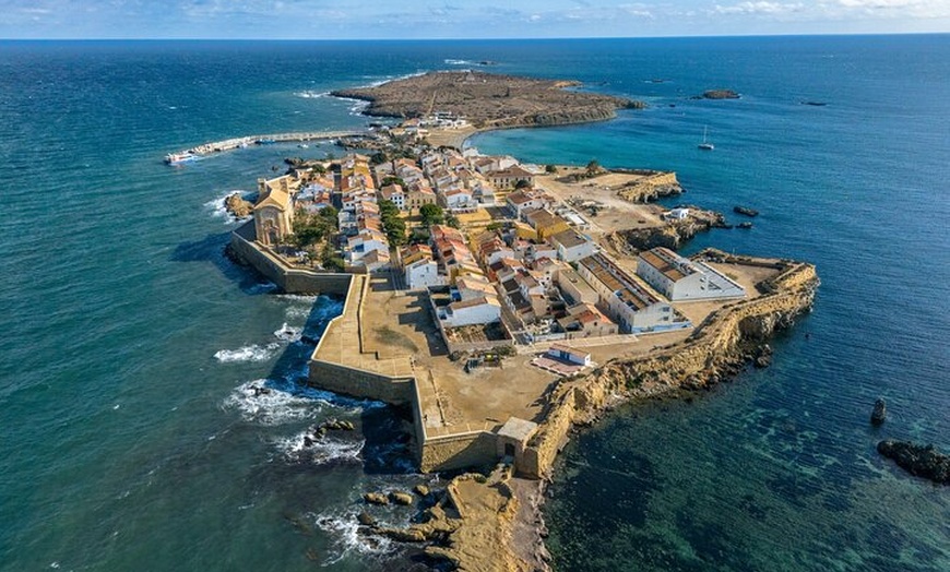 Desde Santa Pola, dé un paseo panorámico en barco por el mar Mediterráneo para llegar a la hermosa Isla de Tabarca. Durante el viaje en barco, tenga la oportunidad de observar la vida marina a través de las ventanas submarinas, lo que ofrece una visión única de la reserva marina protegida de la isla.