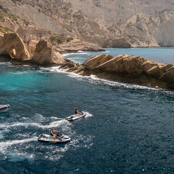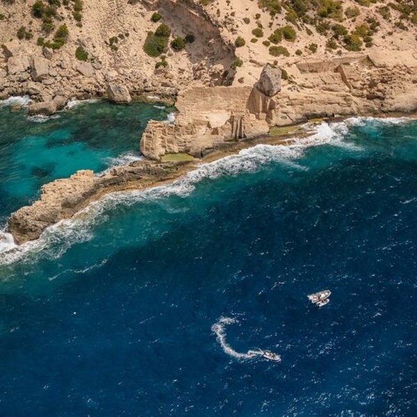 Atlantis es un lugar único en Ibiza, el agua cristalina y sus extrañas formas rocosas (se deben a la extracción del marés que forman las murallas de Dalt Villa (S. XVI) que puedes contemplar en Ibiza) hacen que sea considerado un lugar mágico. Una vez adquirida la formación básica, comenzaremos nuestra excursión hacia “Atlantis”. Terminada la excursión, os dejaremos en la zona de recogida; también podéis quedaros en el punto de partida si así lo deseáis. El Tour a Atlantis en Moto de Agua es espectacular no solo por la magia de Atlantis, si no porque también de camino, cruzaremos por parajes naturales como la famosa Isla de Es Vedrá. También pasaremos por increíbles calas como Cala Compte, Cala Tarida, Cala Vadella o Cala d’Hort. Es uno de nuestros Tour estrella.