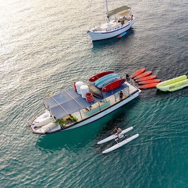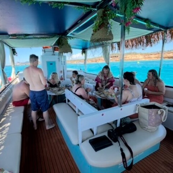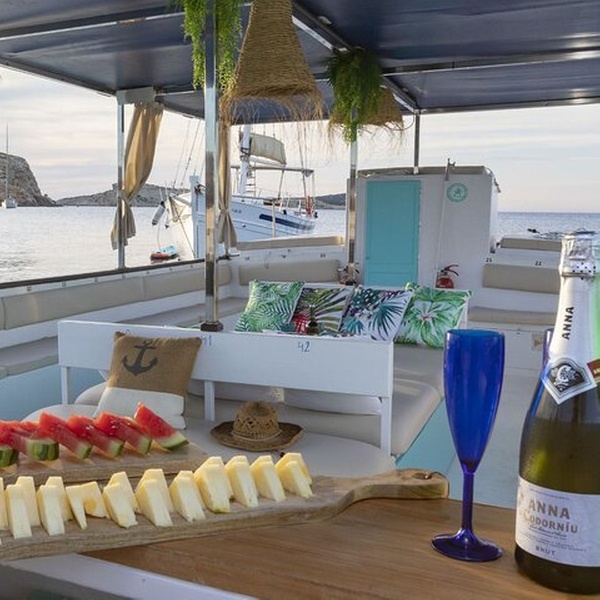 Descubra la belleza de Ibiza desde el mar en un tour privado en barco para hasta 15 personas (disponible para grupos más grandes hasta 50 personas bajo demanda) Elija entre un crucero al mediodía o una mágica experiencia al atardecer con una vista en primera fila del Café del Mar. Navegará por la impresionante costa, pasando por las icónicas calas de Ibiza Cala Bassa y Cala Comte. Dependiendo de las condiciones meteorológicas, fondearemos en Cala Bassa y Cala Comte para que disfrutes de nuestras exclusivas actividades acuáticas, como paddleboard, snorkel y nuestras exclusivas bicicletas acuáticas, además de una deliciosa selección de tapas españolas a bordo. El bar abierto incluye cava sangría, cervezas, refrescos y agua, servidos durante toda la experiencia. Disfrute de música relajada, vistas impresionantes y un ambiente mediterráneo inmejorable, perfecto para celebraciones, familias o simplemente tiempo de calidad con su gente.