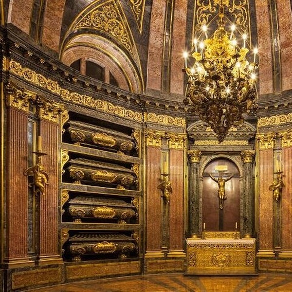 Descubrirás los secretos del monasterio, conociendo a los personajes que le dieron forma a través de la historia. Durante el recorrido, visitarás la Basílica Real, la Biblioteca que Felipe II creó, el Claustro y las Salas Capitulares, llenas de obras de arte de El Greco, Tiziano o Velázquez. Luego, te dirigirás al corazón del monasterio, donde espera el Panteón Real, el lugar de enterramiento de los reyes y la realeza desde el siglo XVI. El recorrido terminará en el Palacio de los Habsburgo, dentro de las habitaciones donde Felipe II vivió y murió.