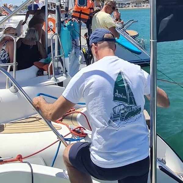- Paseo en catamarán, patrón y tripulación profesional, baños, vestuarios.