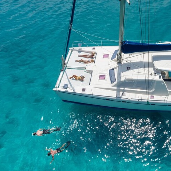 - Paseo en catamarán, patrón y tripulación profesional, combustible, baños, vestuarios.
