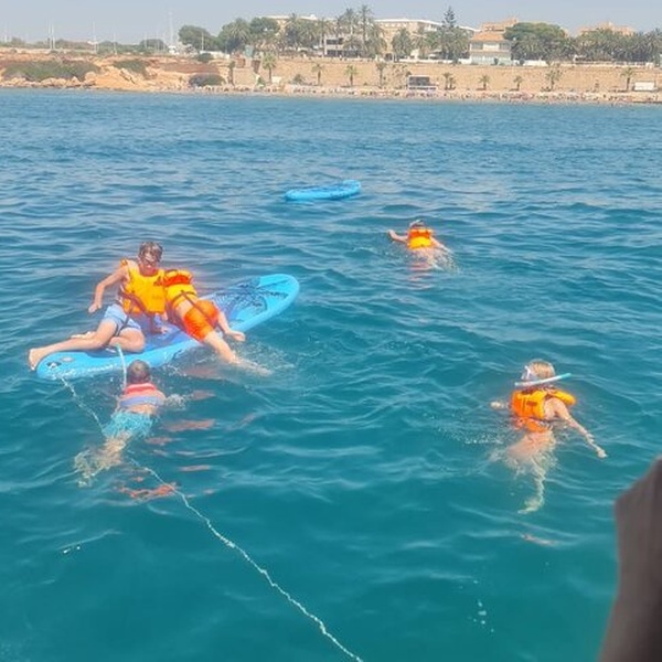 Elija un viaje por la mañana, por la tarde o por la noche. Sube a bordo del barco y navega por la costa de Torrevieja. Salga al mar y relájese mientras el capitán echa el ancla. Disfrute de un refrigerio y tome el sol a bordo. Eres bienvenido a traer tus propios bocadillos y bebidas. Acuéstese en la red del trampolín o siéntese en el comedor para disfrutar de la magnífica vista. Sumérgete en el mar para disfrutar de un refrescante baño. Cámbiate cómodamente en uno de los vestuarios privados. Al finalizar el viaje se regresa al puerto deportivo y se baja en el mismo lugar. ¡Es una oportunidad perfecta para relajarse, disfrutar de la naturaleza y pasar un buen rato en el agua!