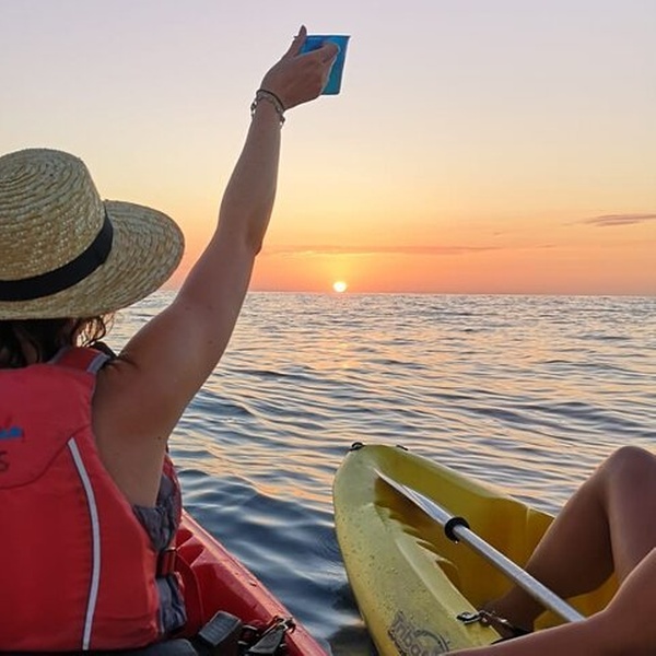 Durante el recorrido visitaremos cuevas esculpidas por el mar. Paleamos bordeando preciosas zonas de la costa ibicenca, altos acantilados con formaciones rocosas increíbles, y pararemos a descansar en lugares con encanto. Aquí podemos relajarnos y disfrutar de las vistas o bien sumergirnos en el mar y practicar snorkel, ¡la opción está en tus manos! Cuando empiece a caer el sol lo despediremos y brindaremos con una copa de cava o un refresco para celebrarlo.
