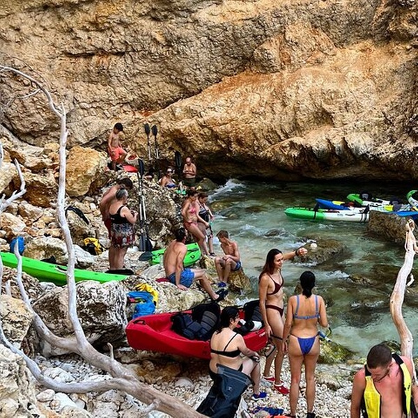 Cueva del Llop Marí, donde entraremos para descubrir sus rincones ocultos y hacer snorkel en su misterioso interior. A continuación, nos dirigiremos a la impresionante Cala en Caló.