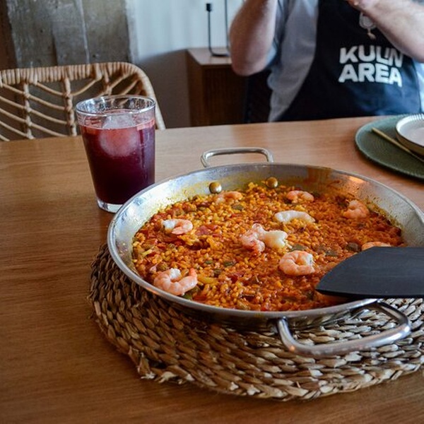 Ponte tu delantal y sumérgete en la maravillosa experiencia de elaborar una auténtica paella española con nosotros. Apostamos por un enfoque genuino, utilizando ingredientes frescos de origen local y especias tradicionales para dar vida al plato. ¡Y recuerda, disfrutarás comiendo tu creación culinaria, así que ven con apetito!