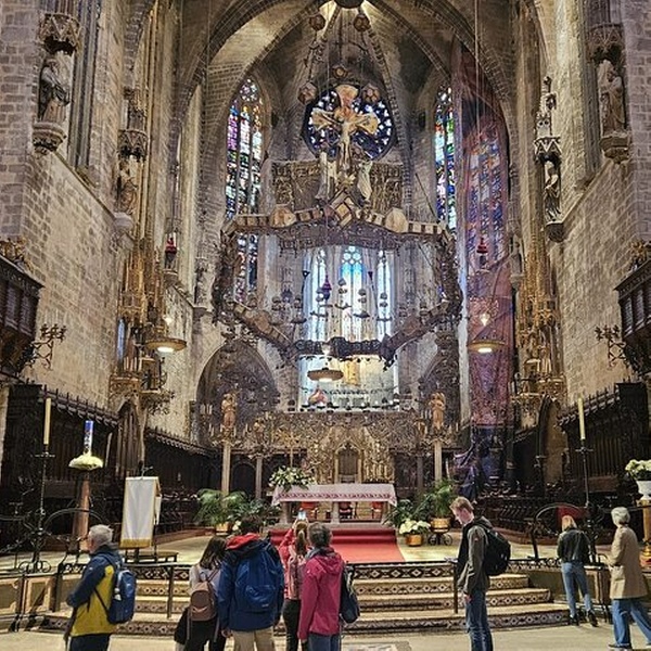Descubre el encanto, la historia y la impresionante arquitectura del casco antiguo de Palma de Mallorca en esta visita guiada por expertos. Pasea por sus pintorescas calles, descubre joyas escondidas y explora uno de los monumentos más emblemáticos de la ciudad con acceso sin colas a la magnífica Catedral de Santa María de Palma, también conocida como La Seu. ¡Experimenta lo mejor de la historia, la cultura y la arquitectura de Palma en este tour por la ciudad que no puedes perderte! Lo más destacado del recorrido es el acceso reservado a la Catedral de Palma, una de las estructuras góticas más llamativas de España. Los huéspedes podrán admirar sus imponentes columnas, intrincadas vidrieras y el impresionante retablo mayor. Conozca la fascinante historia de la catedral y cómo fue rediseñada por Antoni Gaudí a principios del siglo XX. El tour concluye cerca de la catedral, dejándote tiempo libre para explorar más Palma a tu antojo o relajarte en uno de sus encantadores cafés.