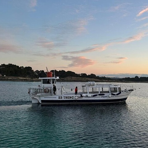 Es Trenc Boat- Puesta del Sol Disfrutar de una puesta de sol en una de las mejores playas de Mallorca Es perfecto para familias o grupos de amigos que quieran vivir la experiencia de navegar por las aguas de Mallorca. ¡Experimente la puesta de sol como nunca lo había hecho! Paseo en barco de 2 horas del puerto de Colonia Sant Jordi a la playa de Es Trenc con una parada para nadar o hacer esnorquel.