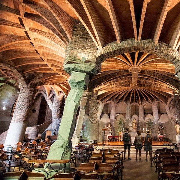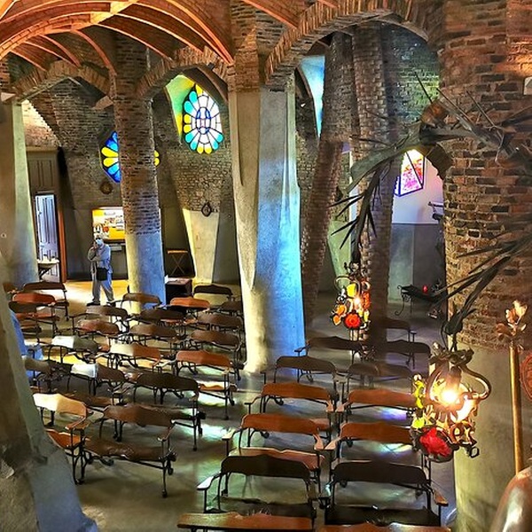 Su guía lo recogerá en su hotel en automóvil y se dirigirá directamente a Colonia Güell en automóvil, una joya escondida cerca de Barcelona. Disfruta de la tranquilidad de esta colonia industrial mientras admiras la arquitectura visionaria de Gaudí en la cripta.