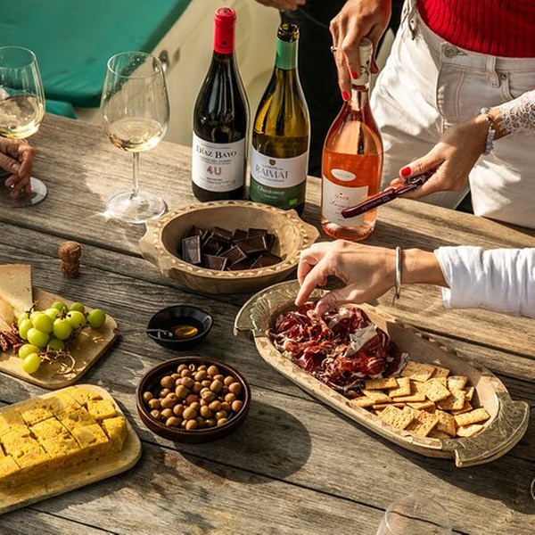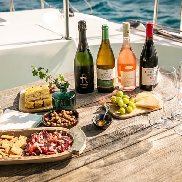 Navegue por la impresionante costa de Barcelona mientras disfruta de una cata de vinos Premium dirigida por un sumiller privado. Saboree una cuidada selección de exquisitos vinos españoles, perfectamente maridados con delicias gourmet catalanas, aceitunas frescas y uvas, todo ello en un entorno relajado y elegante a bordo.