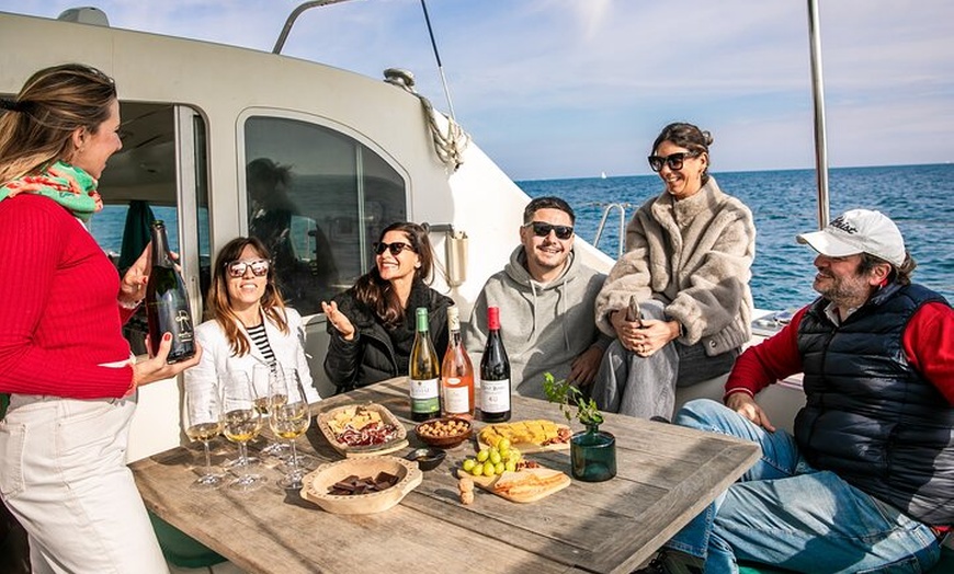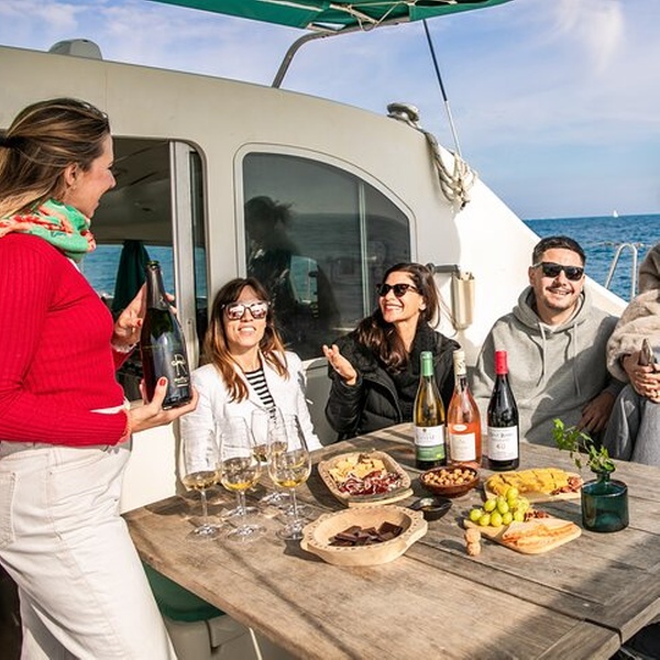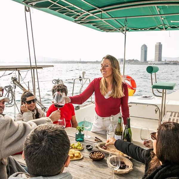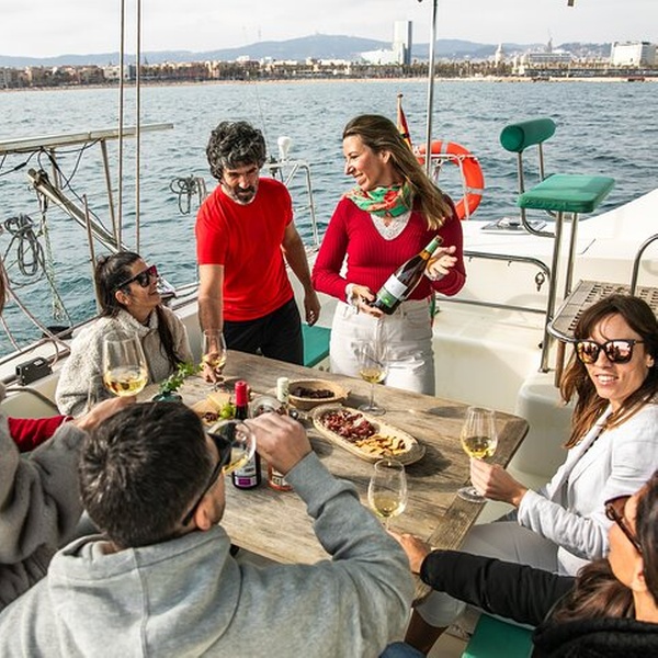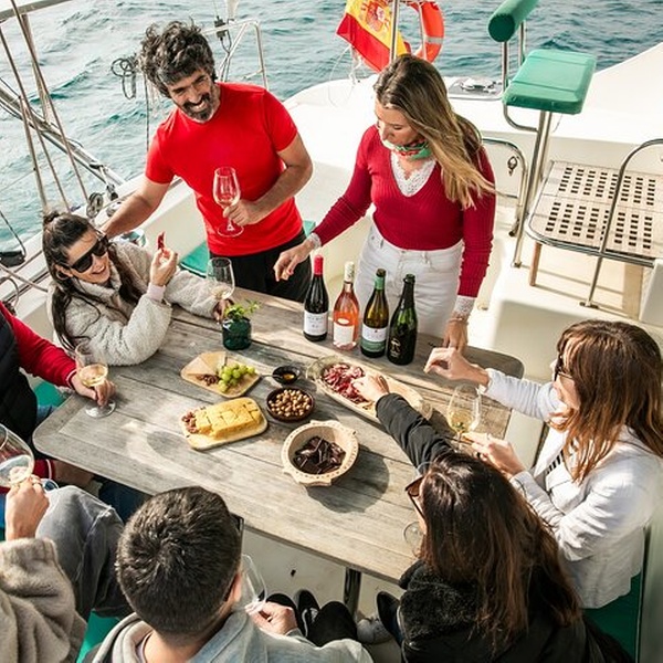Navegue por la impresionante costa de Barcelona en un lujoso catamarán en un pequeño grupo. Durante 2 horas disfrute de una Degustación Premium guiada por un sumiller experto local. Degusta cuatro vinos españoles premium, perfectamente maridados con sabores catalanes: Jamón ibérico, queso artesano curado, aceitunas, uvas y chocolate negro, mientras disfruta del ambiente mediterráneo. Relájese en la red delantera, sienta la brisa del mar y disfrute de las impresionantes vistas del horizonte de la ciudad. Partiendo de Marina Vela Barcelona, esta experiencia íntima ofrece el equilibrio perfecto de elegancia y relajación. Tanto si eres un amante del vino como si simplemente buscas una aventura náutica única, esta experiencia es ideal para venir solo o con amigos, parejas y grupos pequeños que buscan disfrutar de sabores exquisitos mientras navegas por las aguas cristalinas de Barcelona.