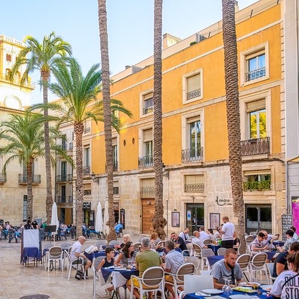 Relájese en la Plaza de la Reina, una bulliciosa plaza con impresionantes vistas de la Catedral de Valencia.