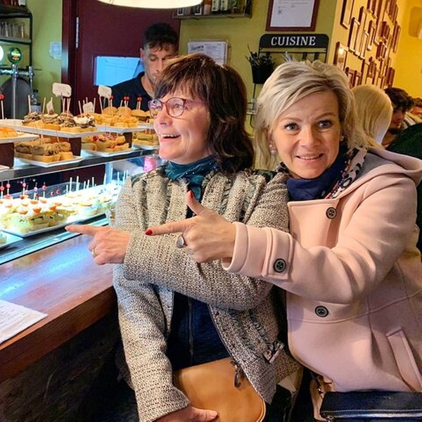 Elige tus pinxos y ahorra espacio para la crema catalana. Acompáñalo todo con una copa de vino tinto o una jarra de sangría afrutada, con vistas a la Plaza del Pi.