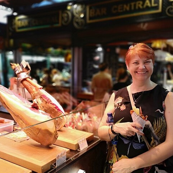 Siente la energía de La Boquería. Haz una pausa en un puesto de jamón y prueba el jamón ibérico de bellota. Deja que la textura y el sabor hablen por sí mismos.